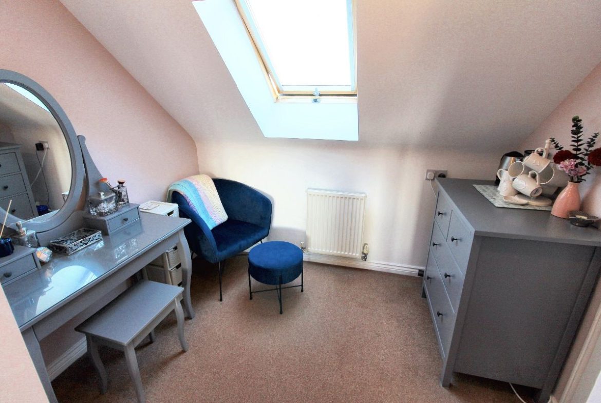 Double glazed rear facing Velux window, door to En-suite, radiator.