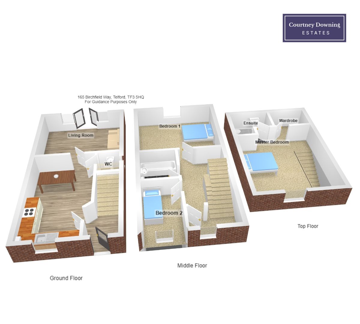 On the ground floor there is a modern kitchen/diner, downstairs wc and lounge, to the 1st floor are bedrooms 2 & 3 complemented by the family bathroom.