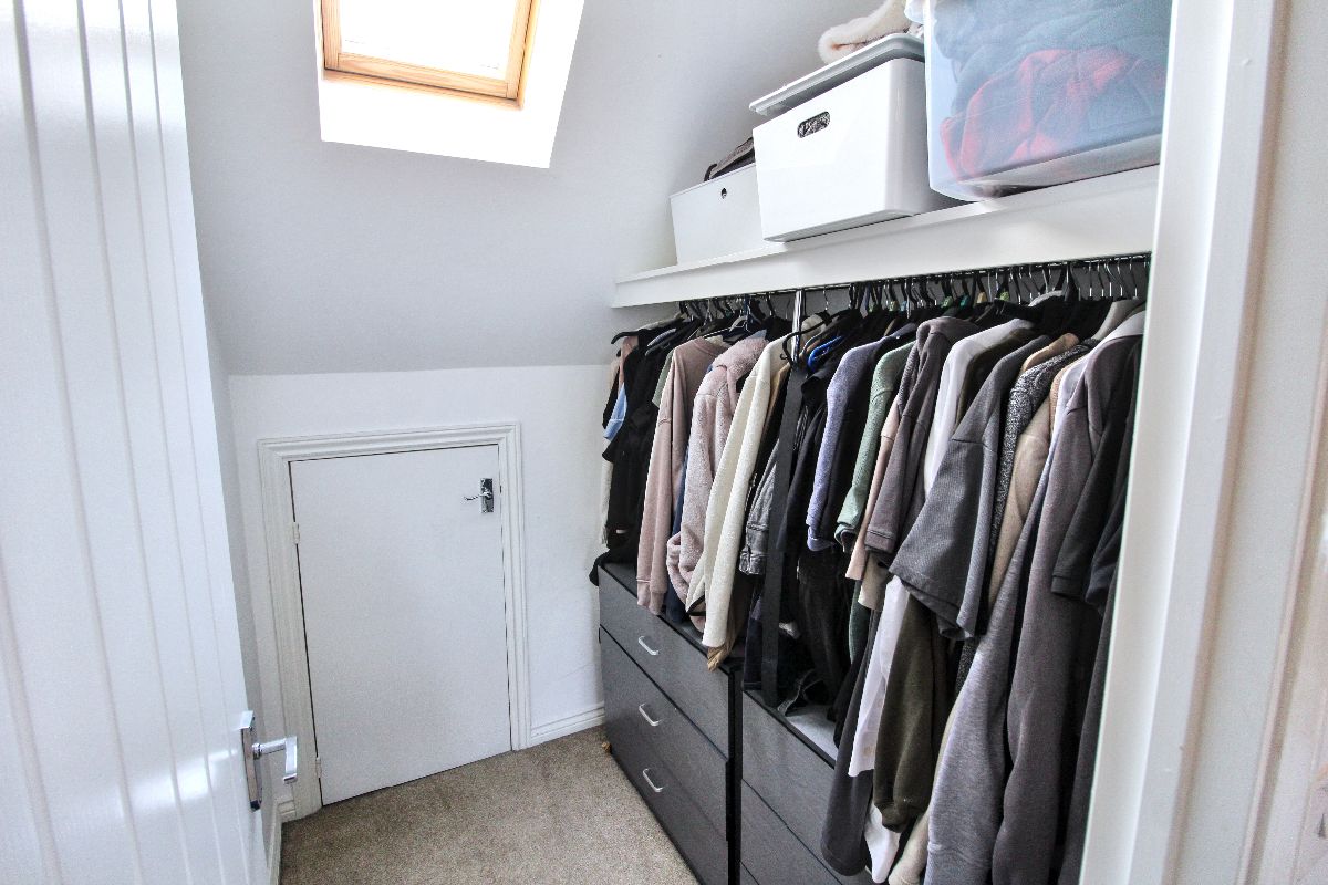 Double glazed rear facing Velux window, 1/2 door to storage cupboard.