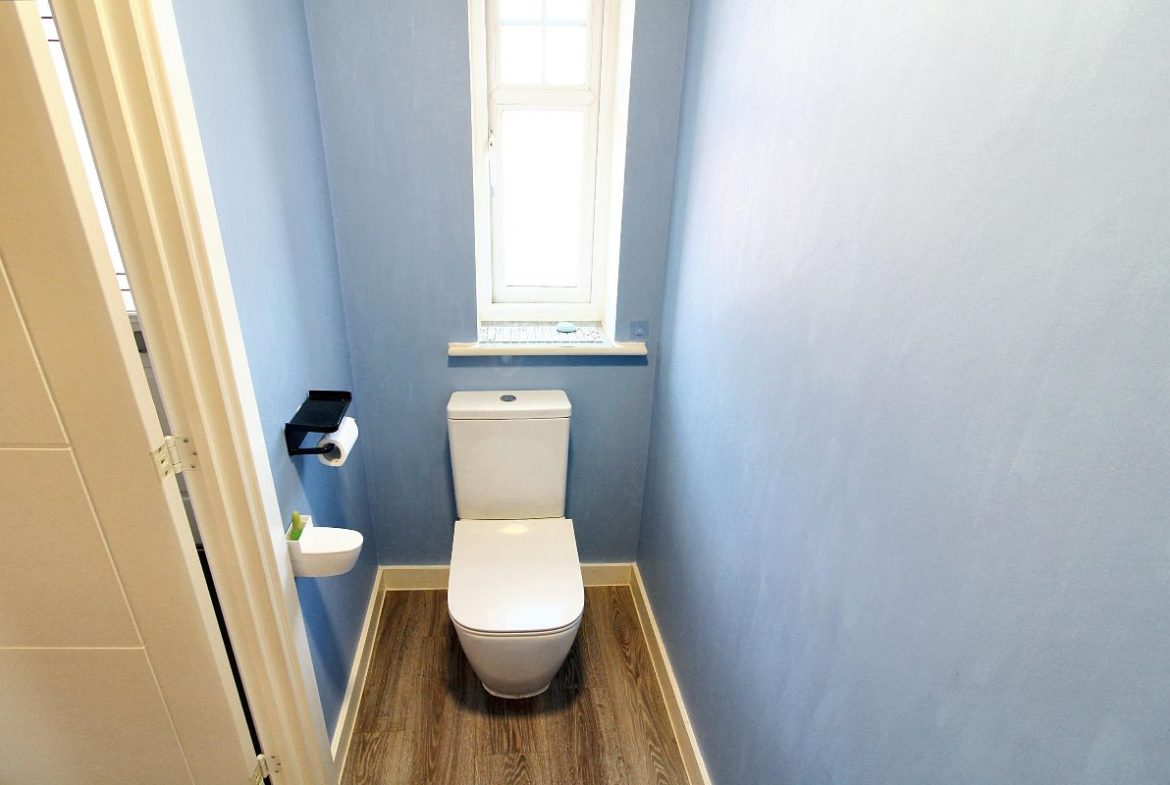 Low flush wc, sink and pedestal with mixer tap, double glazed front facing window, extractor fan, luxury vinyl flooring, double radiator.