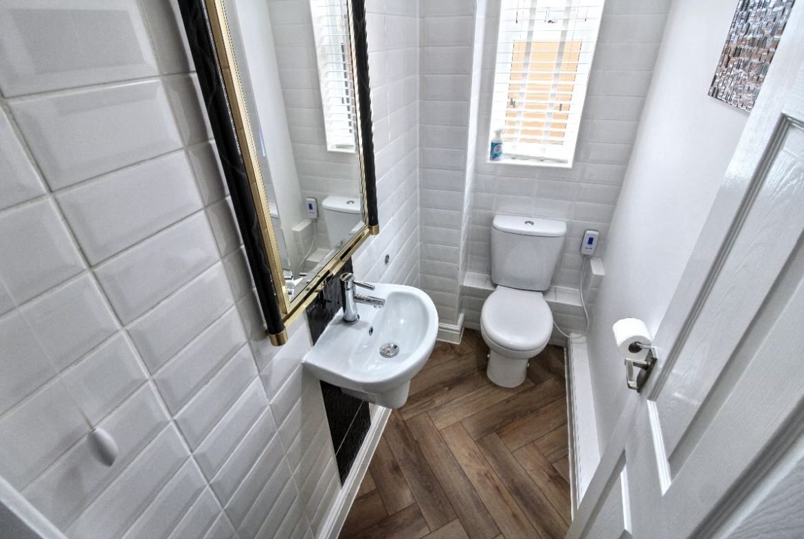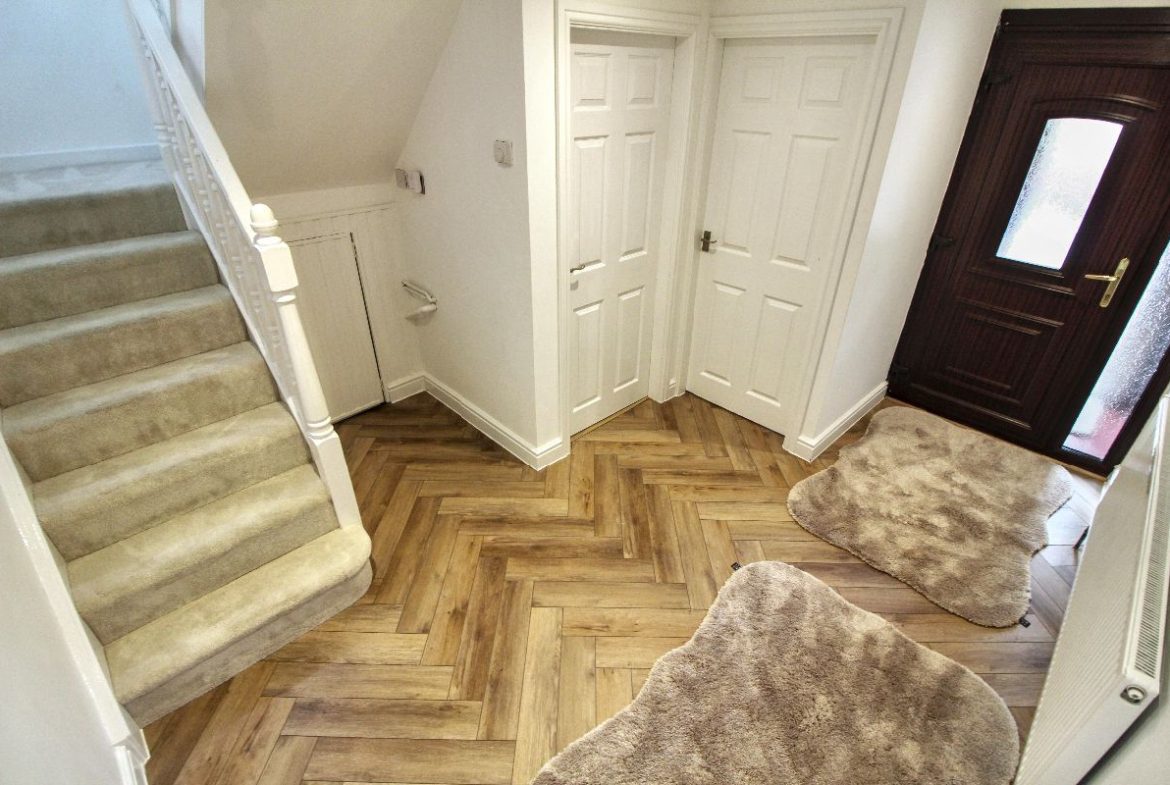 Front door the entrance hall, double radiator, doors to bedroom 3, downstairs toilet, living room and kitchen/diner, under stair storage with boiler.
