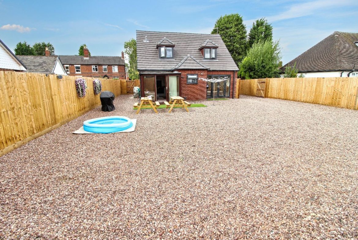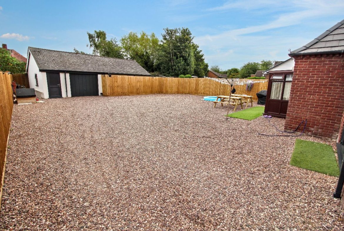 The rear of the property offers a substantial, low-maintenance gravelled garden, enclosed by new timber fencing for privacy. A detached garage and additional outbuilding provide excellent storage or potential workshop space. With plenty of room for outdoor seating, dining, and leisure, this space is perfect for families or anyone who enjoys entertaining outdoors.