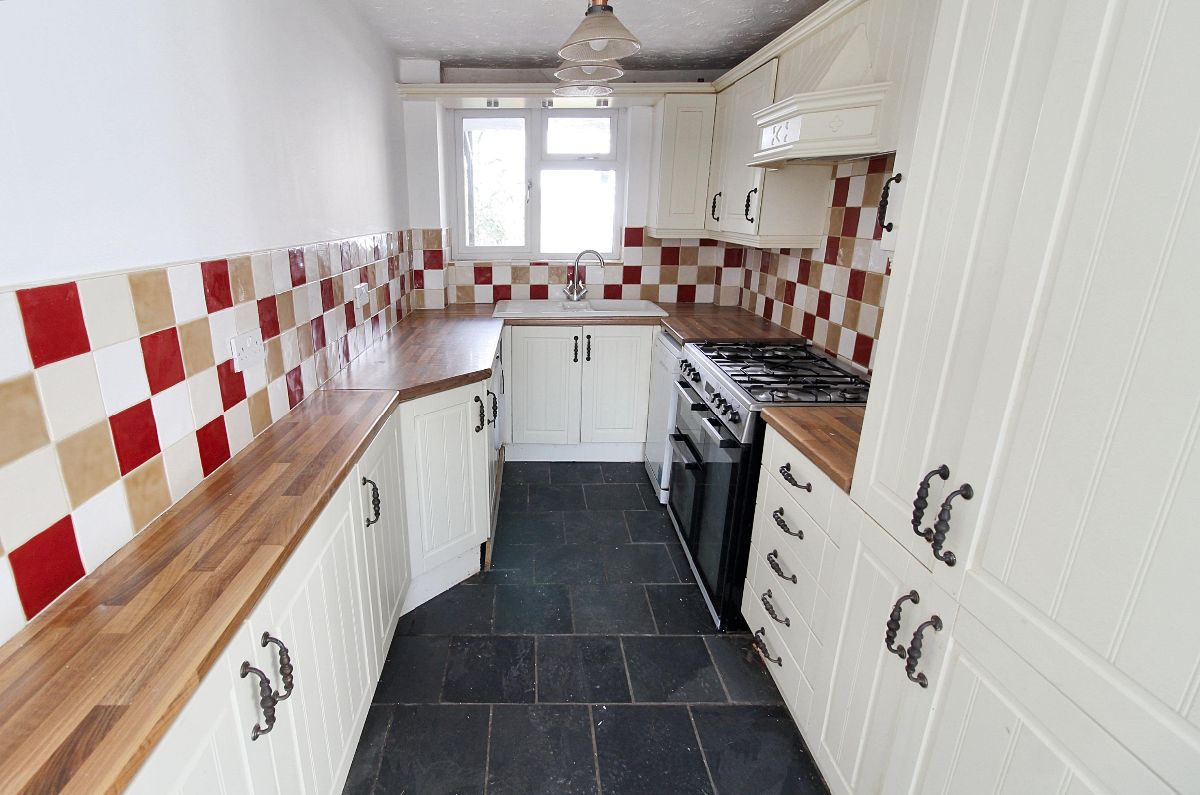 Range of wall and base units, worksurface, one and half sink and drainer with mixer tap, integral fridge, plumbing for washing machine, double glazed front facing window, ceramic tiled floor.